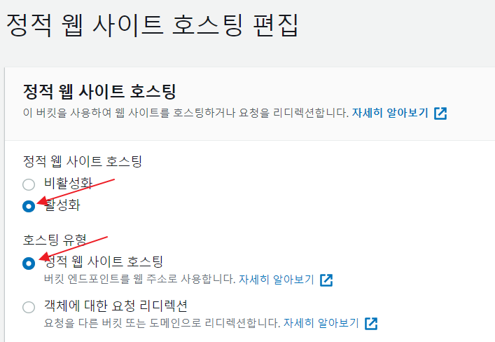 - 버킷호스팅을 체크한다.