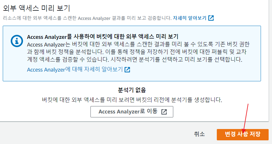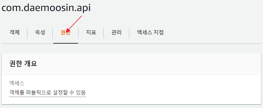 - 액세스 제어목록을 퍼블릭으로 전환할 것권한설정에서 체크해제 한다.
