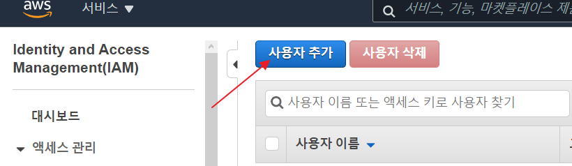- 서비스에서 IAM 검색 후 진입한다.