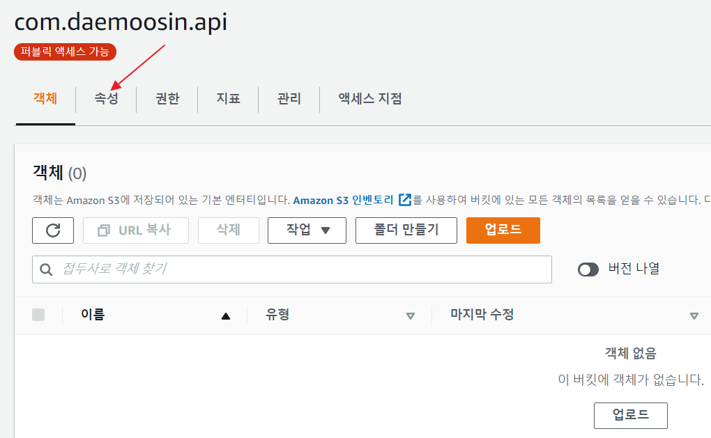 - 생성한 버킷을 체크한다.
